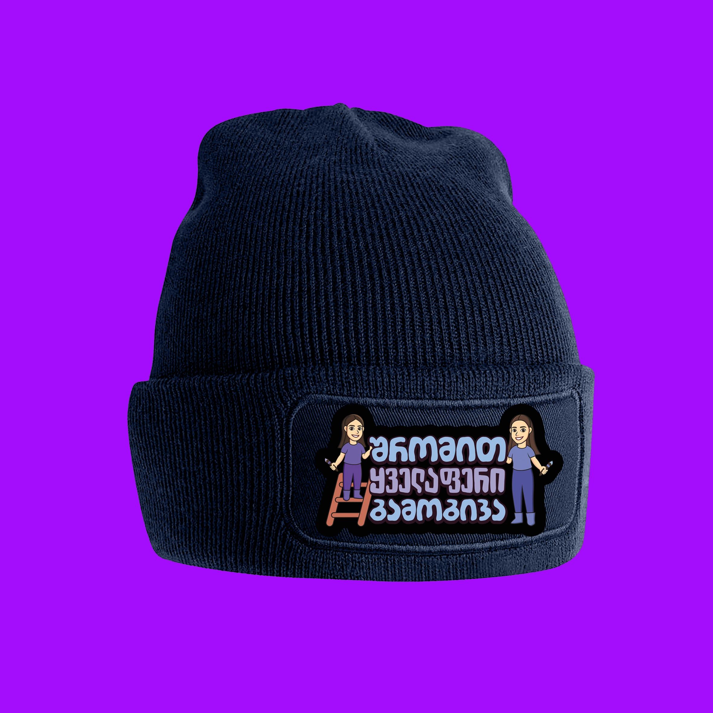 ⭐ მუქი ლურჯი ქუდი “შრომით ყველაფერი გამოგივა”.